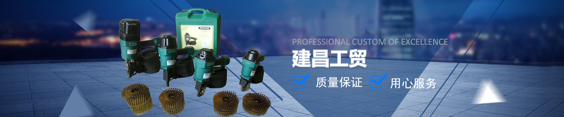 太倉建昌工貿有限公司是一家生產自營品牌"羿箭"各類工業用釘的專業公司,并且代理銷售眾多知名品牌的氣動五金緊固工具(總代理德國PREBENA、代理 德國BeA...